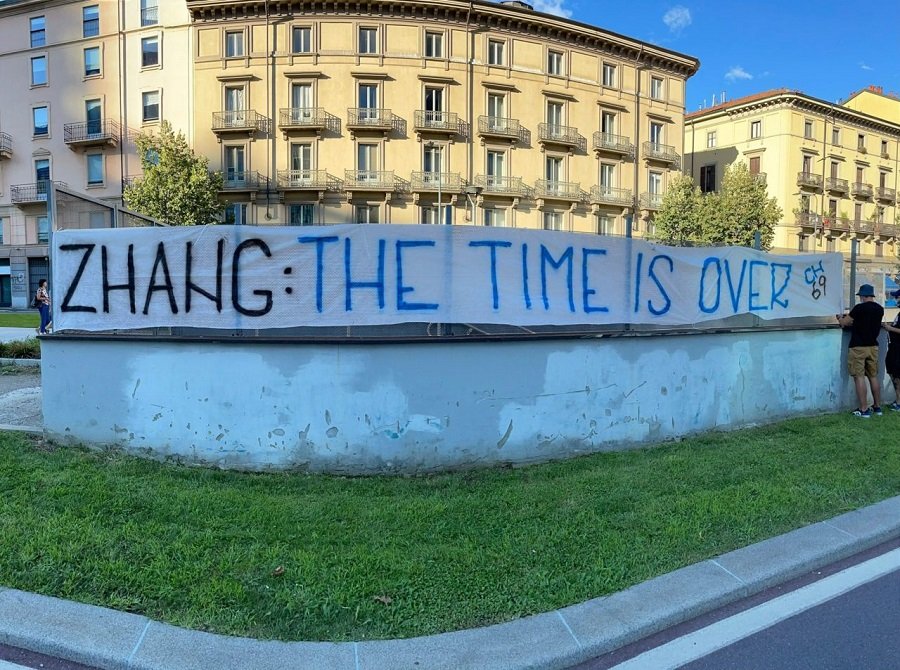 Как отмечает источник вчера, в четверг, 5 августа, болельщики «Интера» разместили баннер перед офисом клуба, на котором размещён следующий текст с обращением к президенту: «Чжан. Время истекло».