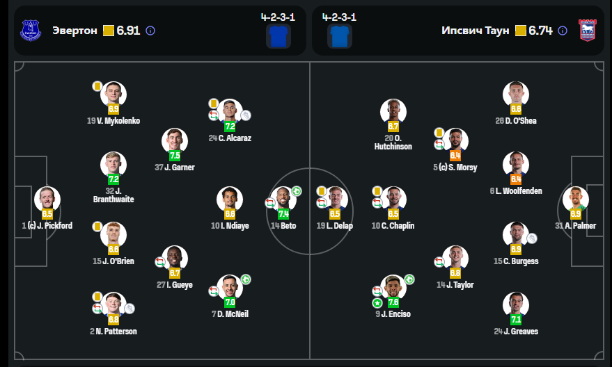 Виталий Миколенко провел на поле весь поединок против “Ипсвича”, демонстрируя смешанные результаты, как свидетельствуют оценки статистических порталов.